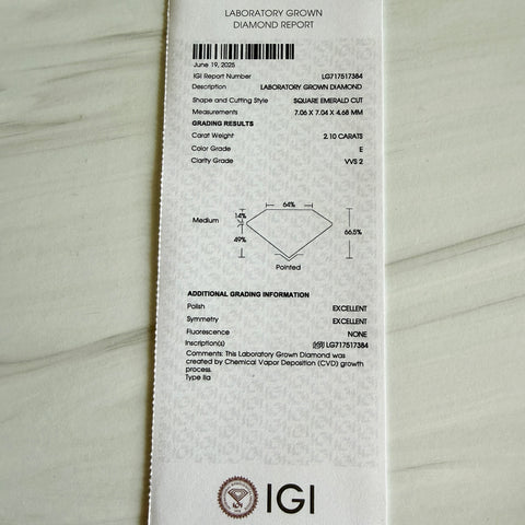 Diamonds: 2.1 carat E/VVS2 Asscher cut lab diamond