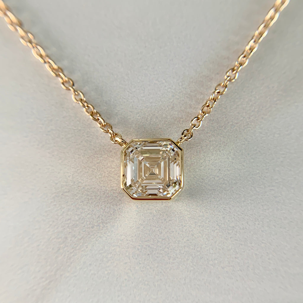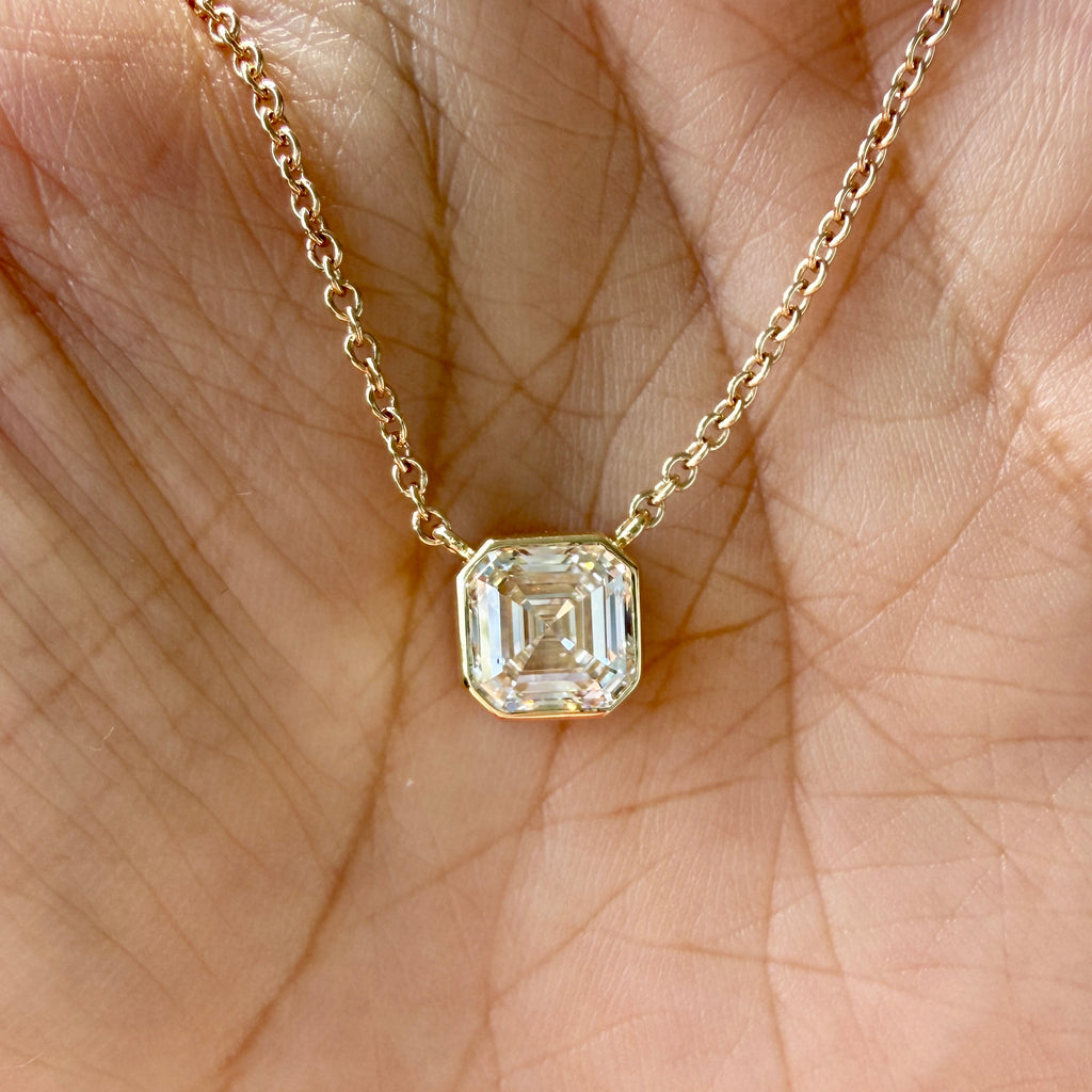 Custom Asscher Cut Lab Diamond Necklace 14k